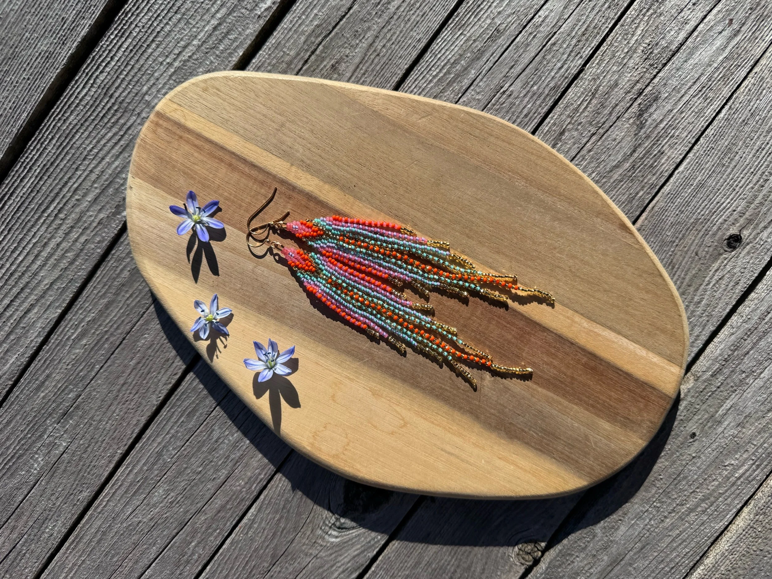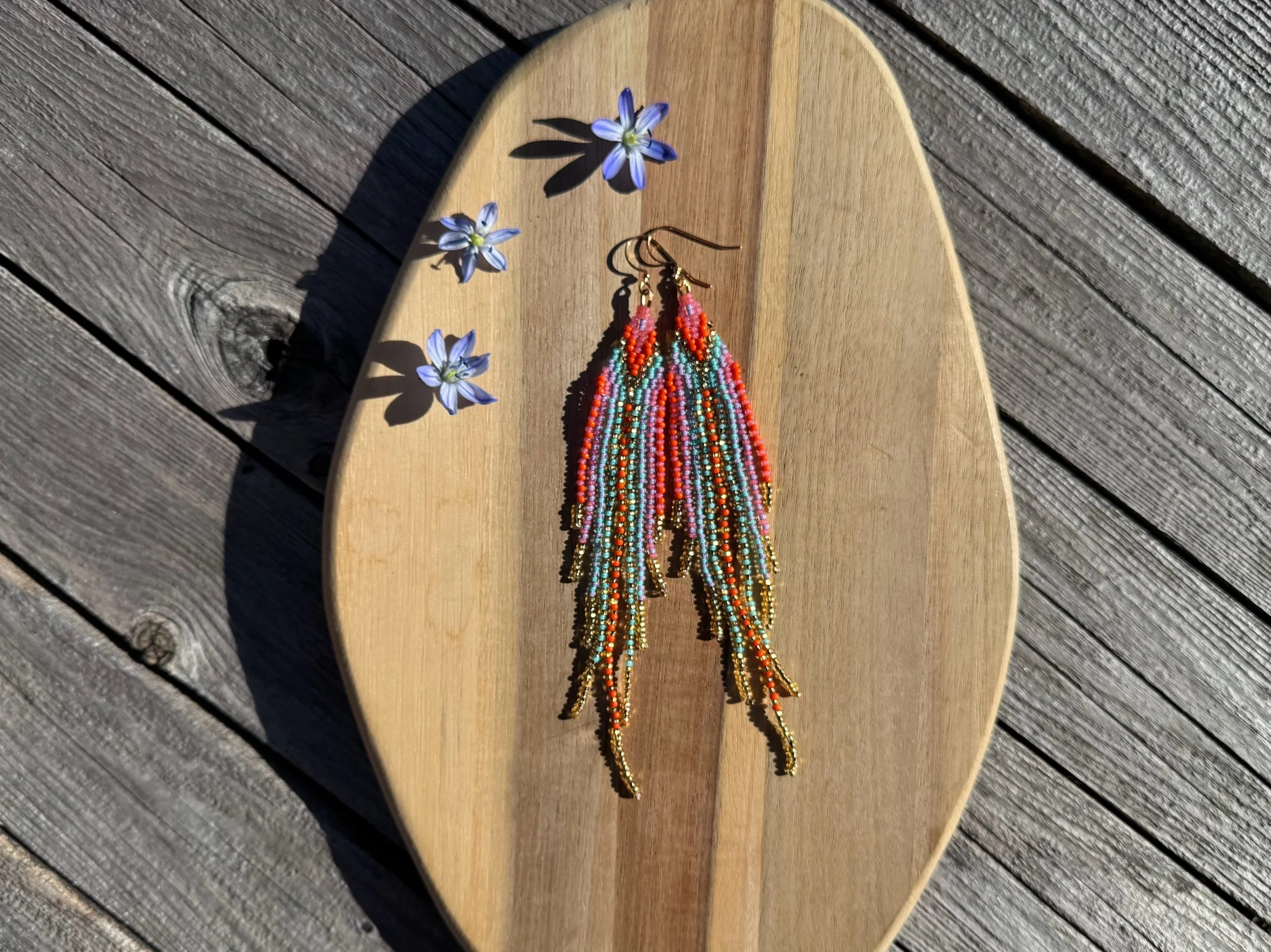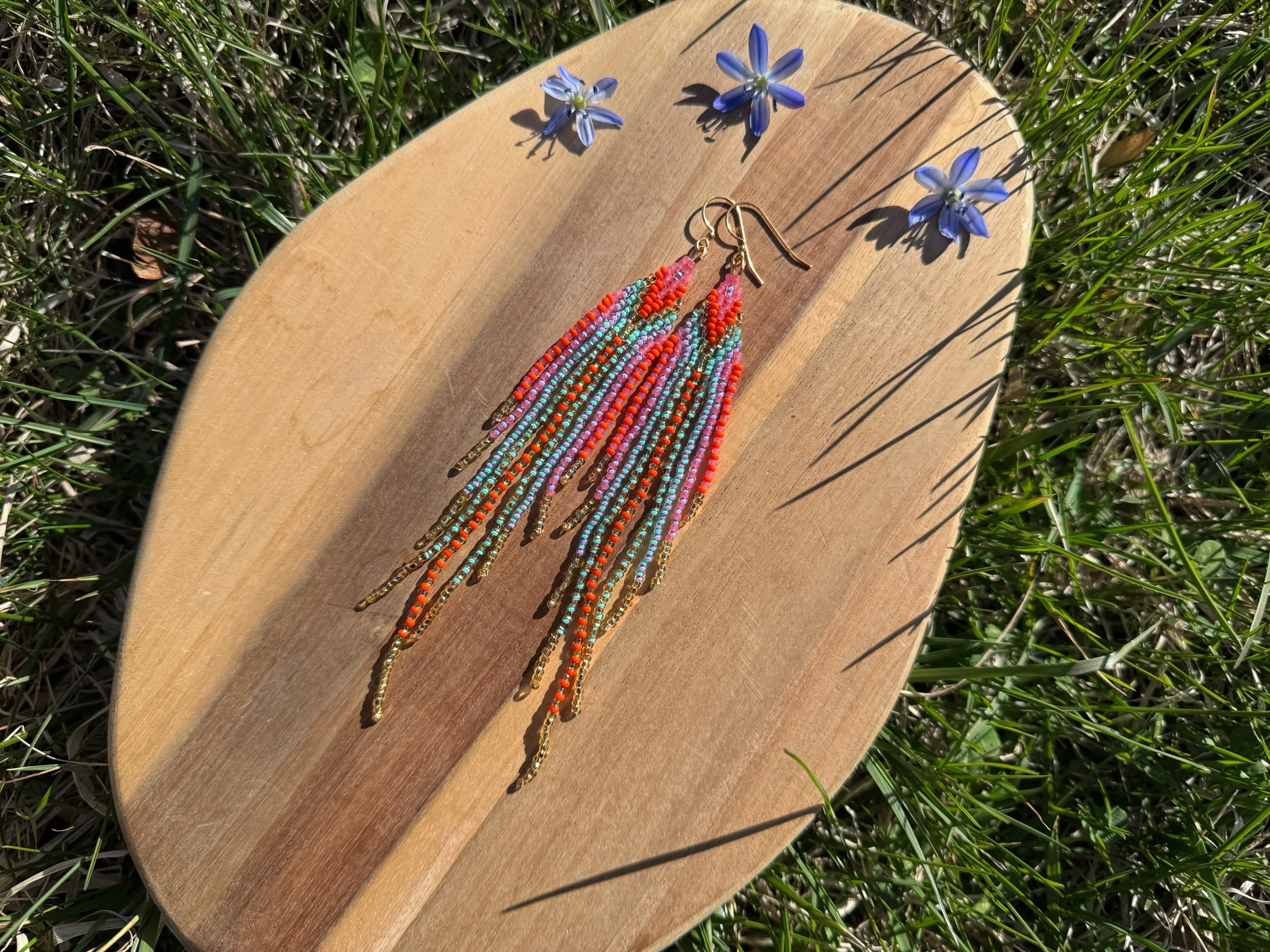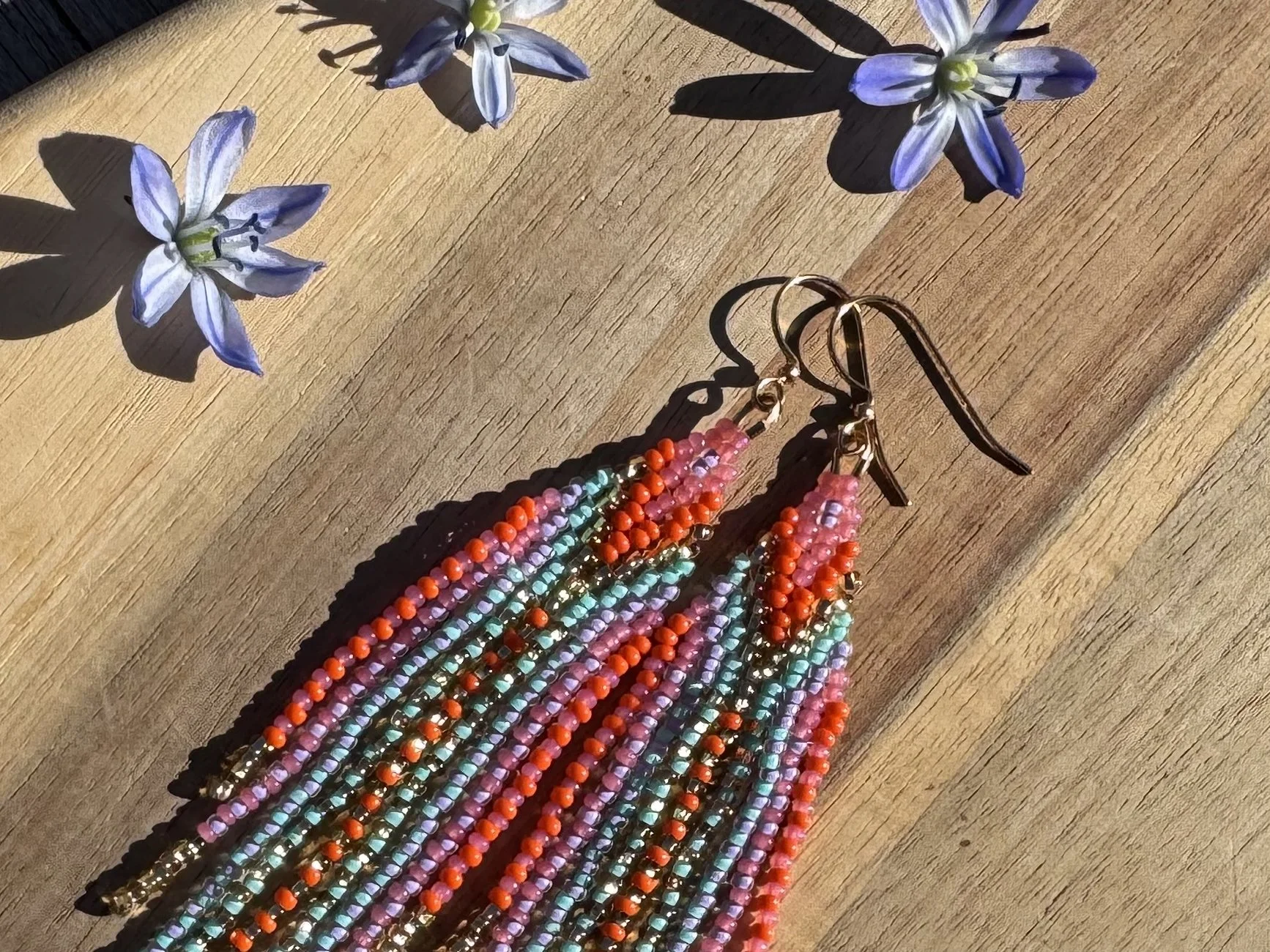 Made with a selection Czech and Japanese glass seed beads. Hooks are 24k gold plated. 6 inches.