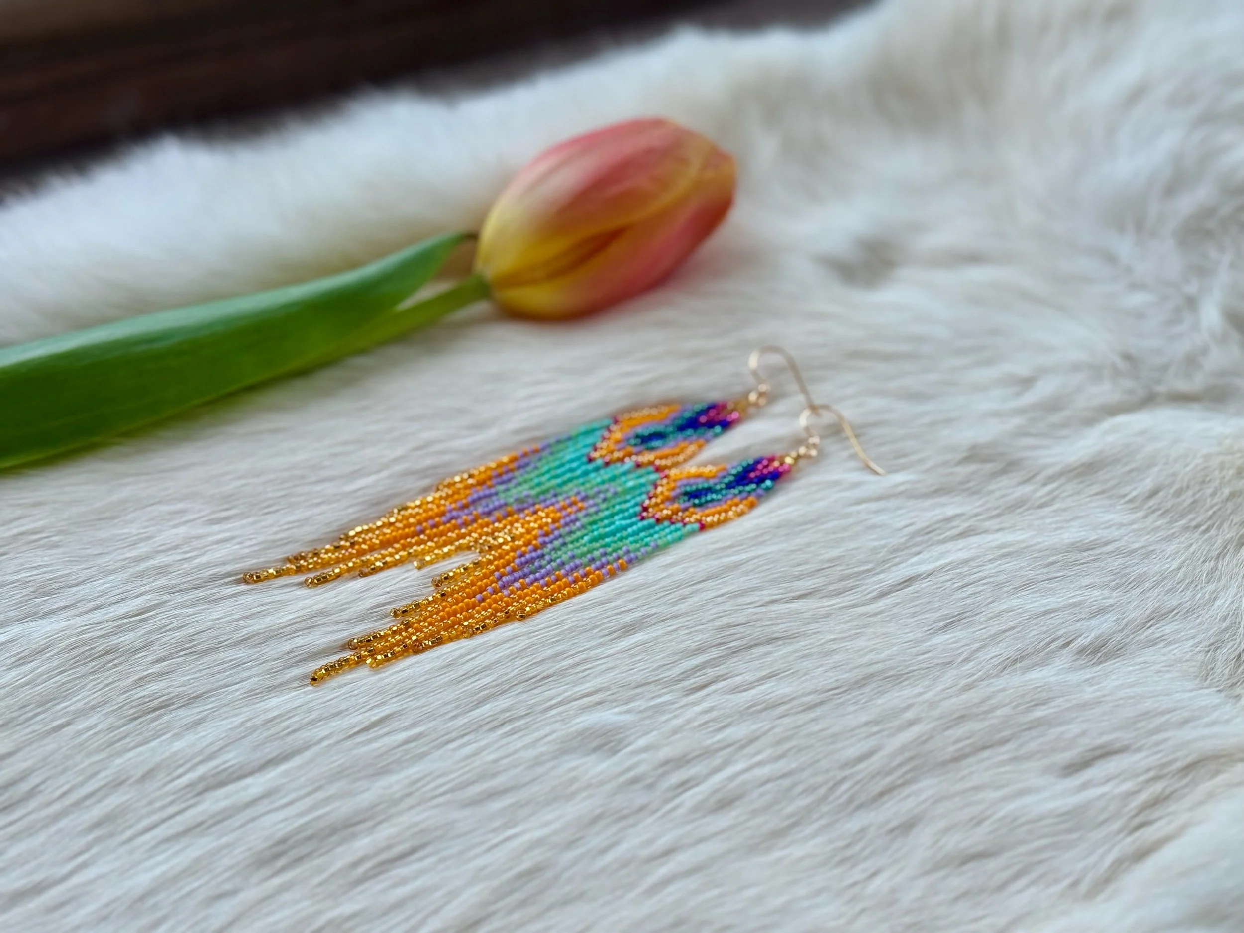 Made with a selection Czech and Japanese glass seed beads. Hooks are 24k gold plated. 5.5 inches.