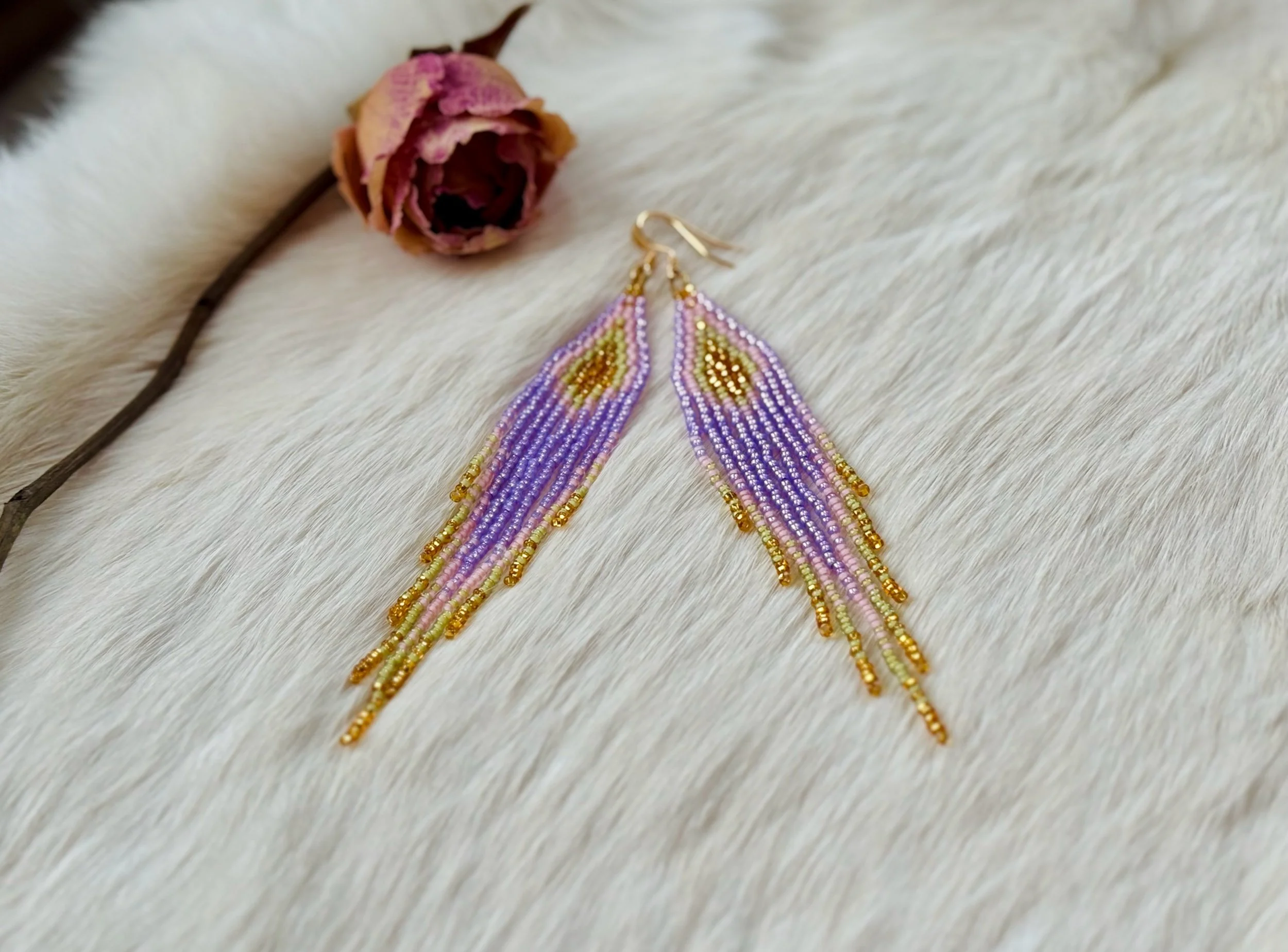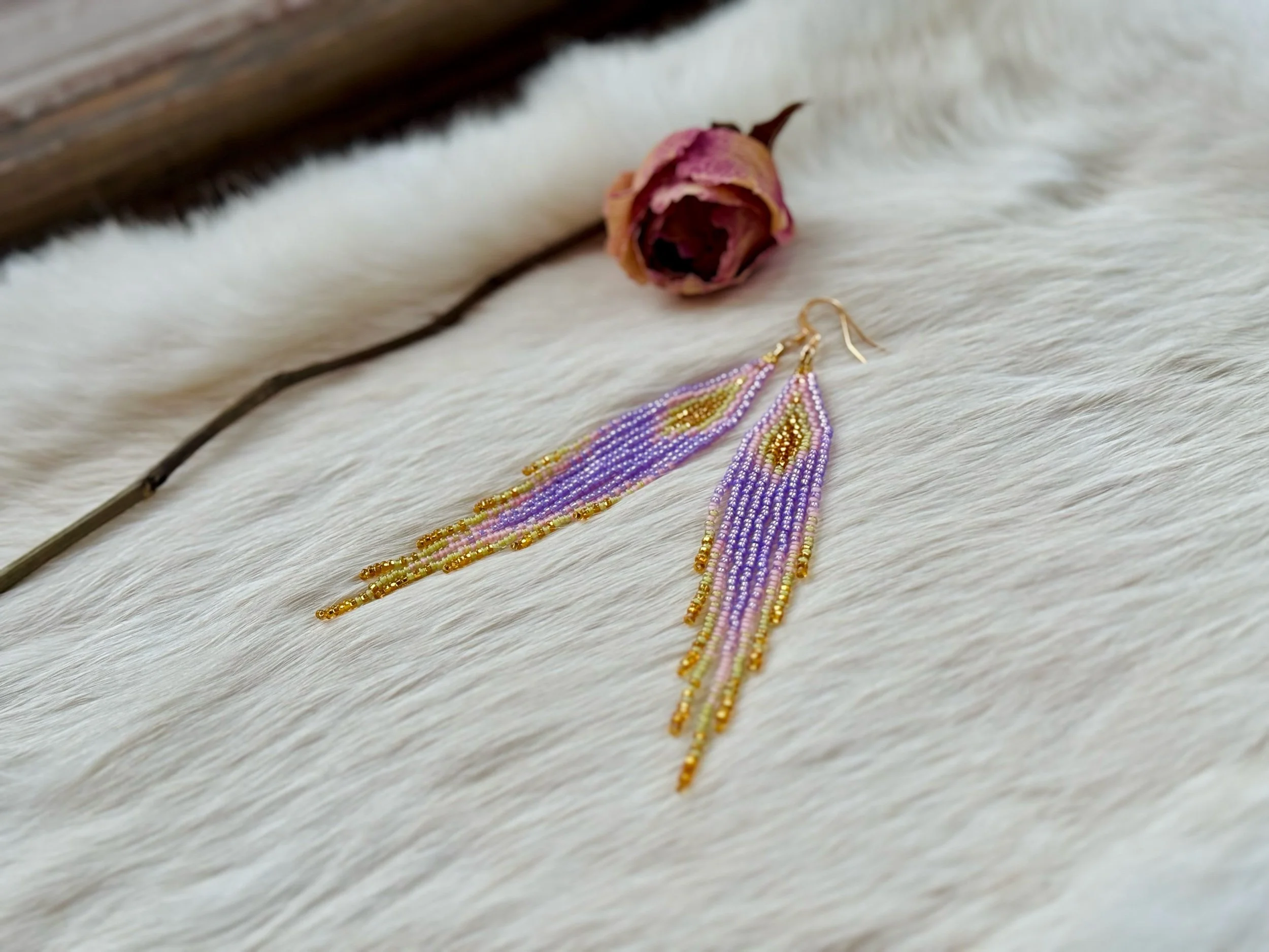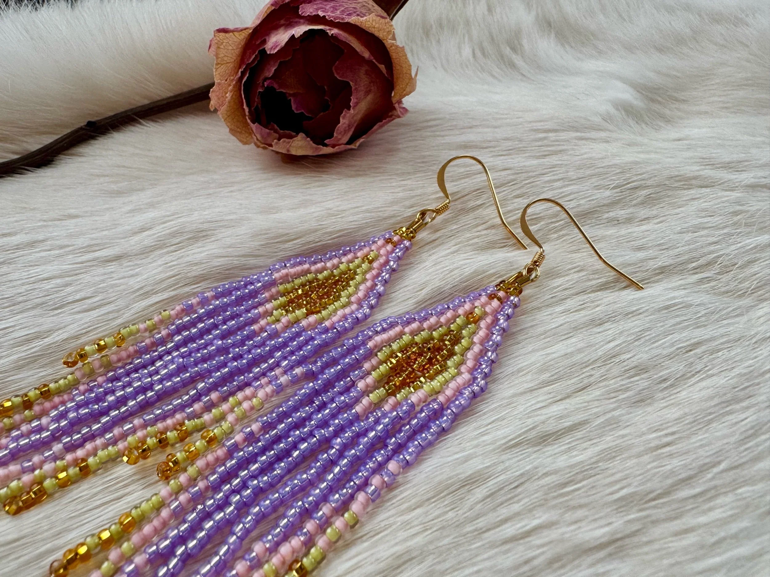 Made with glass seed beads and hypoallergenic 14k gold plated stainless steel hooks. 5.5 inches.